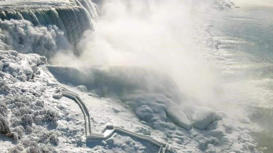 La bomba ciclónica que afecta a Estados Unidos ya es un reguero de muerte y desolación. Temperaturas extremas bajo cero, carreteras intransitables, vuelos cancelados y, por ahora, más de 50 personas cayeron Es el balance que esta dejando esta situación. Sin embargo, estas heladas excepcionales también están dejando imágenes espectaculares, como es el caso de las famosas Cataratas del Niágara, que han quedado casi congeladas.